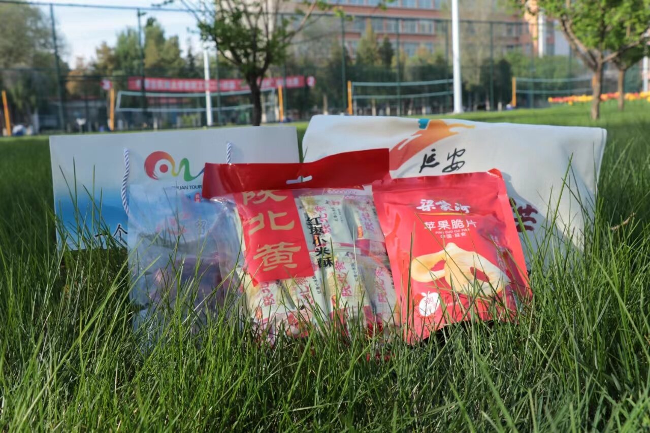 打开寄盒,帆白布袋拓印着“延安精神永放光芒”,那是刹那的一眼,是冉冉升起的希望;红枣小米酥昭示着“军民一心致万难”,那是眷恋的一眼,是丹心赤血的羁绊。果干的清脆回甜,仿若碧日苍空下砥砺奋进的先辈;红枣的粒粒饱满,如同鲜红旗帜下茁壮成长的青年。斜挎帆布包,身着志愿服,承载着延安精神给予的信念,我们满怀热情,时刻准备着,我们年华迤逦,涉浪新风帆。