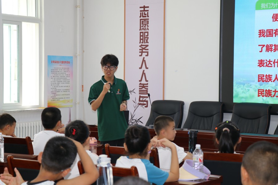 乡村振兴,语言先行。“语筑光华”推普助力乡村振兴实践团分别深入库伦旗养畜牧社区、库伦旗团结村、库伦旗道老都嘎查、库伦旗文化馆等地面相居民、村民、学生等不同群体进行普通话主题宣讲并发放普通话宣传手册。队员们通过红歌合唱、经典诵读、绕口令、生僻字教学、舞蹈表演、趣味小游戏等节目潜移默化地提升了当地人民的语言文化素养和对普通话的重视程度,同时还提高了他们的语言表达能力。