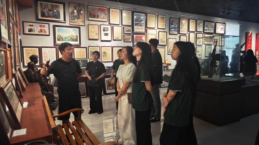 赓续精神血脉,追寻红色记忆。实践团还深入库伦旗道老都红色记忆展馆参观学习,展馆分为七个展区,馆藏藏品7900余件,展示了各族人民在党的领导下百年奋斗历程和库伦旗各族人民共同团结奋斗共同繁荣发展的生动局面。在馆长韩军的引领下,成员们观看了馆内陈列的报刊、书籍、版画等,仿佛置身于那段历史之中。成员们纷纷表示深刻体会到了中国共产党一路走来的无数艰险和磨难,也懂得了作为中华儿女,应铭记历史,居安思危,厚积薄发,要有甘于奉献,传承红色基因的责任与担当!
