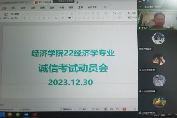 为加强学院学风建设,严肃考风考纪,12月25日至31日,经济学院各班级组织召开期末诚信考试班会,会议由各班班主任主持。
