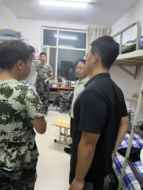 走访过程中,学院领导老师与同学们亲切交流,深入了解新生在住宿、生活及社交等方面的状况,细心询问了新生的军训感受,鼓励他们克服军训中的困难与挑战,将这段经历视为成长的宝贵财富。同时,学院领导一行还检查了公寓的卫生与安全状况,提醒新生注意宿舍用电安全,号召大家携手打造一个既充满活力又安全有序的居住空间。