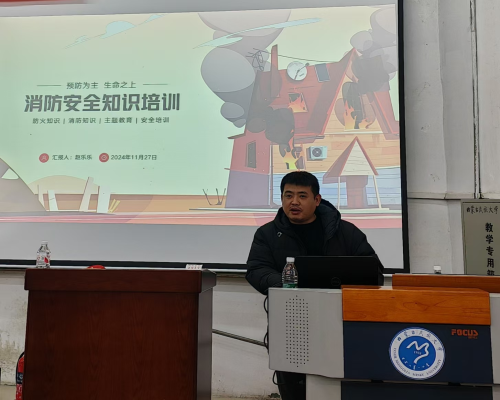 为增强学生的消防安全意识,提升突发情况下的应急处理能力,11月27日,经济学院邀请了安全管理处赵乐乐老师作消防安全知识培训暨应急演练。经济学院党委书记刘力国、应用经济模拟实验室主任李宇明、财务管理实验室主任包乌日汉、辅导员白洋及2024级本科生参加了此次活动。学校安全管理处治安消防科副科长杨宏军及相关工作人员到现场指导。